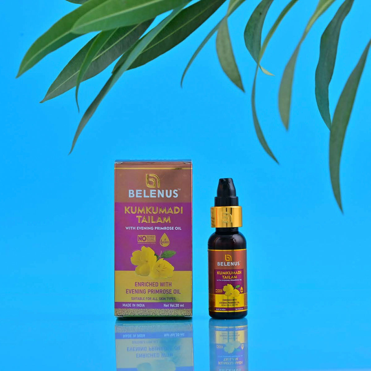 Belenus Kumkumadi Tailam is a luxurious Ayurvedic facial oil formulated to help improve skin radiance, texture, and clarity. Enriched with the traditional goodness of Kumkumadi herbs along with Evening Primrose Oil, this blend helps nourish the skin deeply, support a natural glow, and enhance overall complexion. Suitable for all skin types, especially those looking for brighter, smoother, and more even-toned skin.